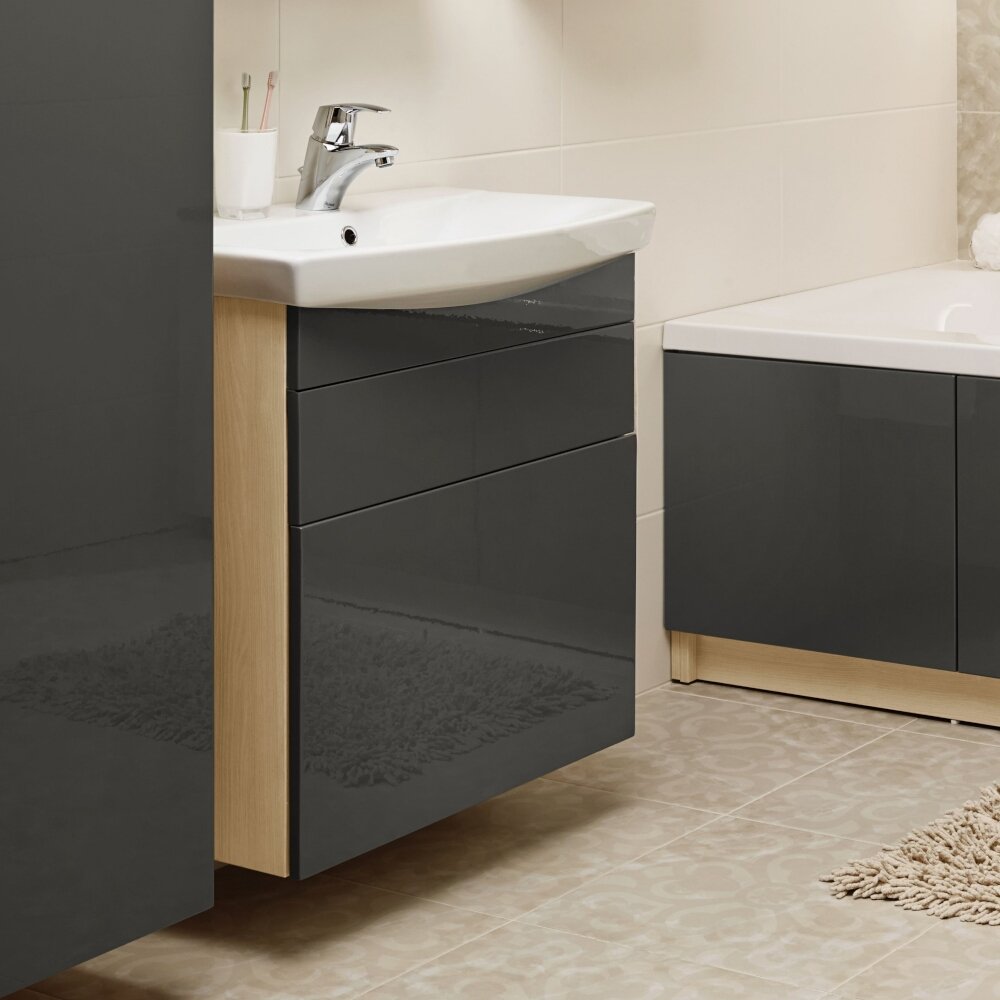 Seria SMART pozwala stworzyć przyjazną i komfortową łazienkę. Stonowana, nawiązująca do stylu skandynawskiego kolorystyka idealnie dopełni nowoczesne, eleganckie wnętrze, a system dotykowego otwierania „push” jednym ruchem pozwoli otworzyć drzwiczki lub szufladę.
