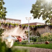 Elegancka lampa ogrodowa w tradycyjnym stylu wykonana z aluminium.
