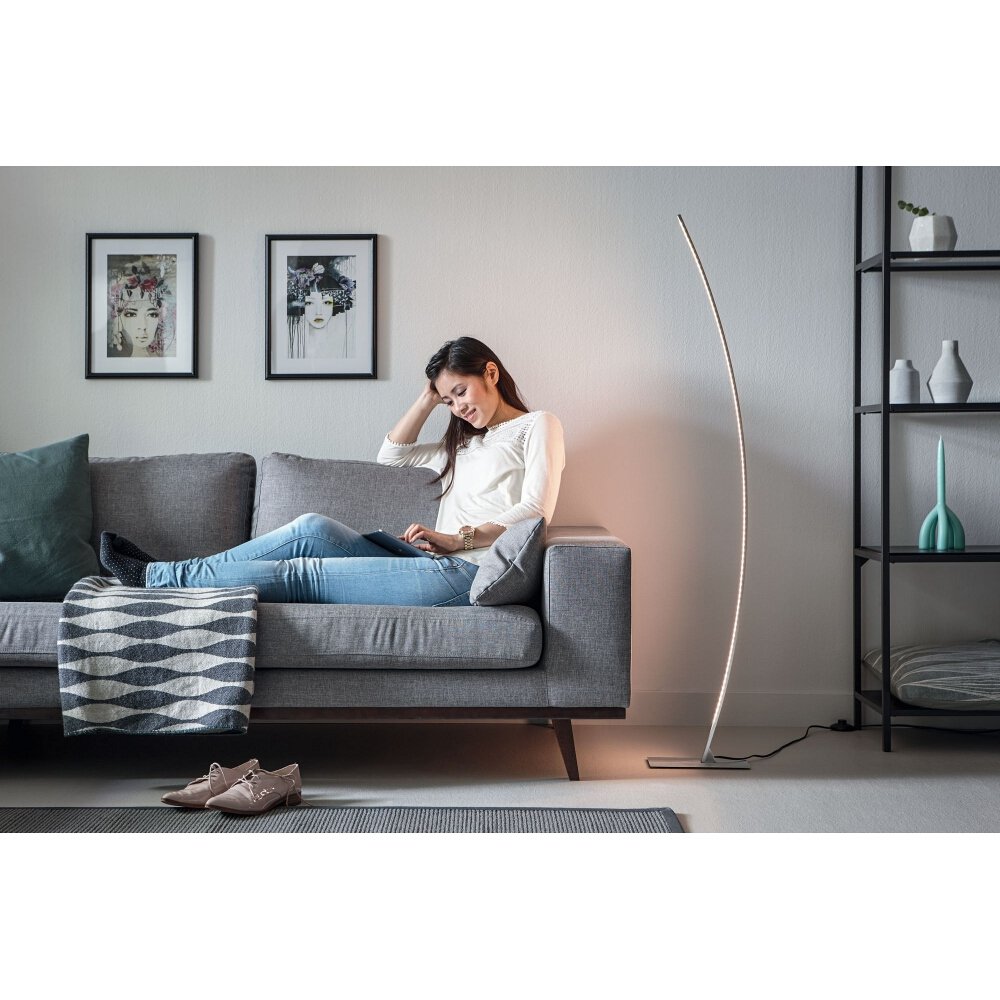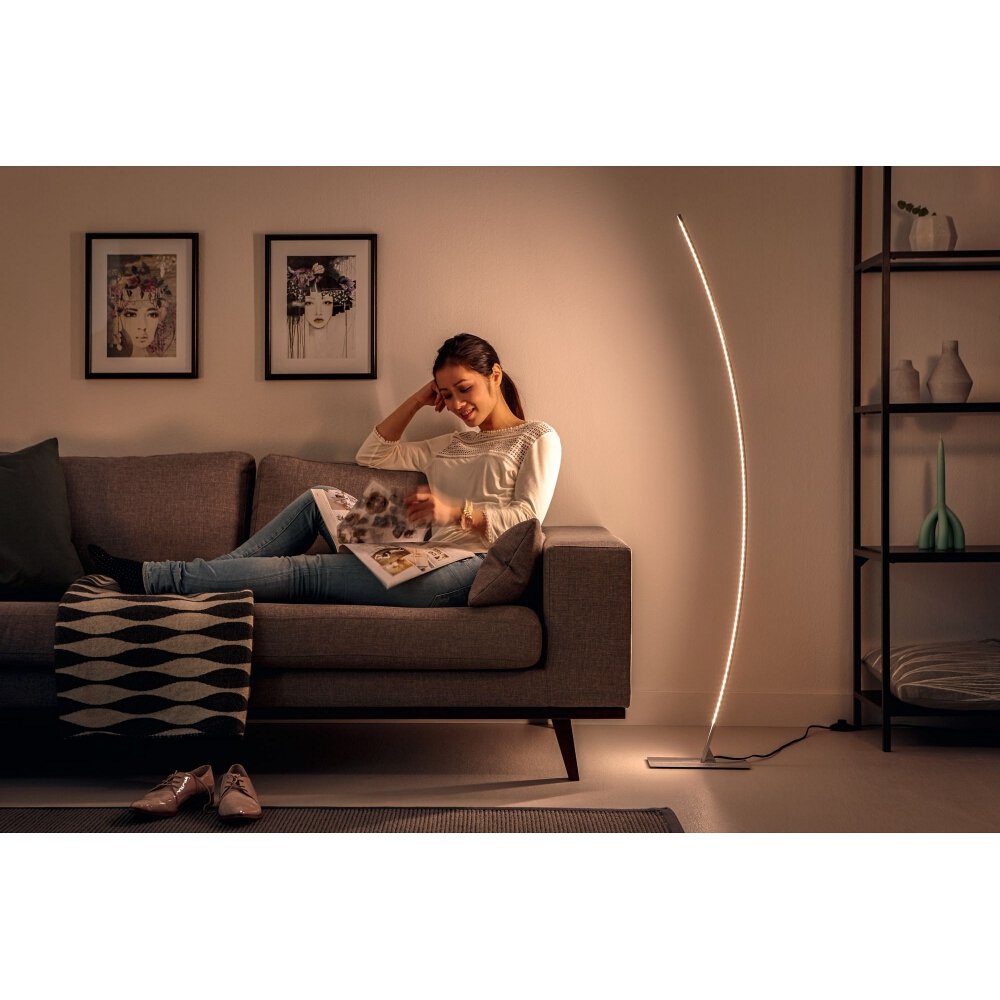 Lampa podłogowaHexagon, LED Philips. Stanowi smukły dodatek do przestrzeni mieszkalnej. Jest wykonana z matowego akrylu i ma podstawę ze szczotkowanego aluminium. Minimalistyczna lampa rozjaśni przestrzeń zaskakującą ilością ciepłego, białego światła LED.