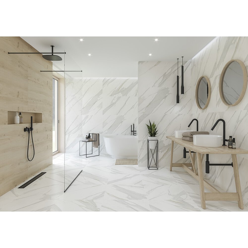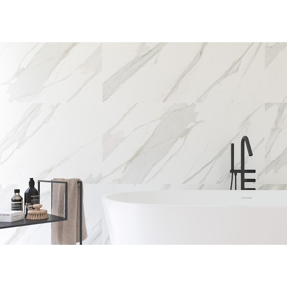 Gres szkliwiony CALACATTA MARBLE white polished mat 59,8x119,8 marki OPOCZNOGatunek drugi. Do stosowania na podłogach i ścianach, wewnątrz i na zewnątrz budynków, z wyłączeniem miejsc o bardzo dużym natężeniu ruchu.