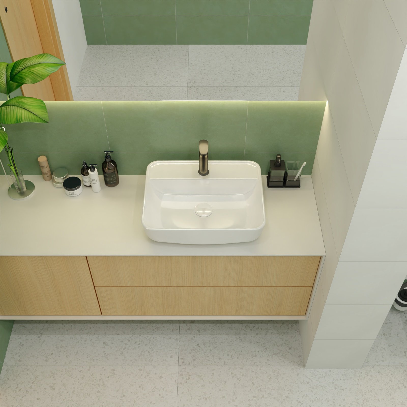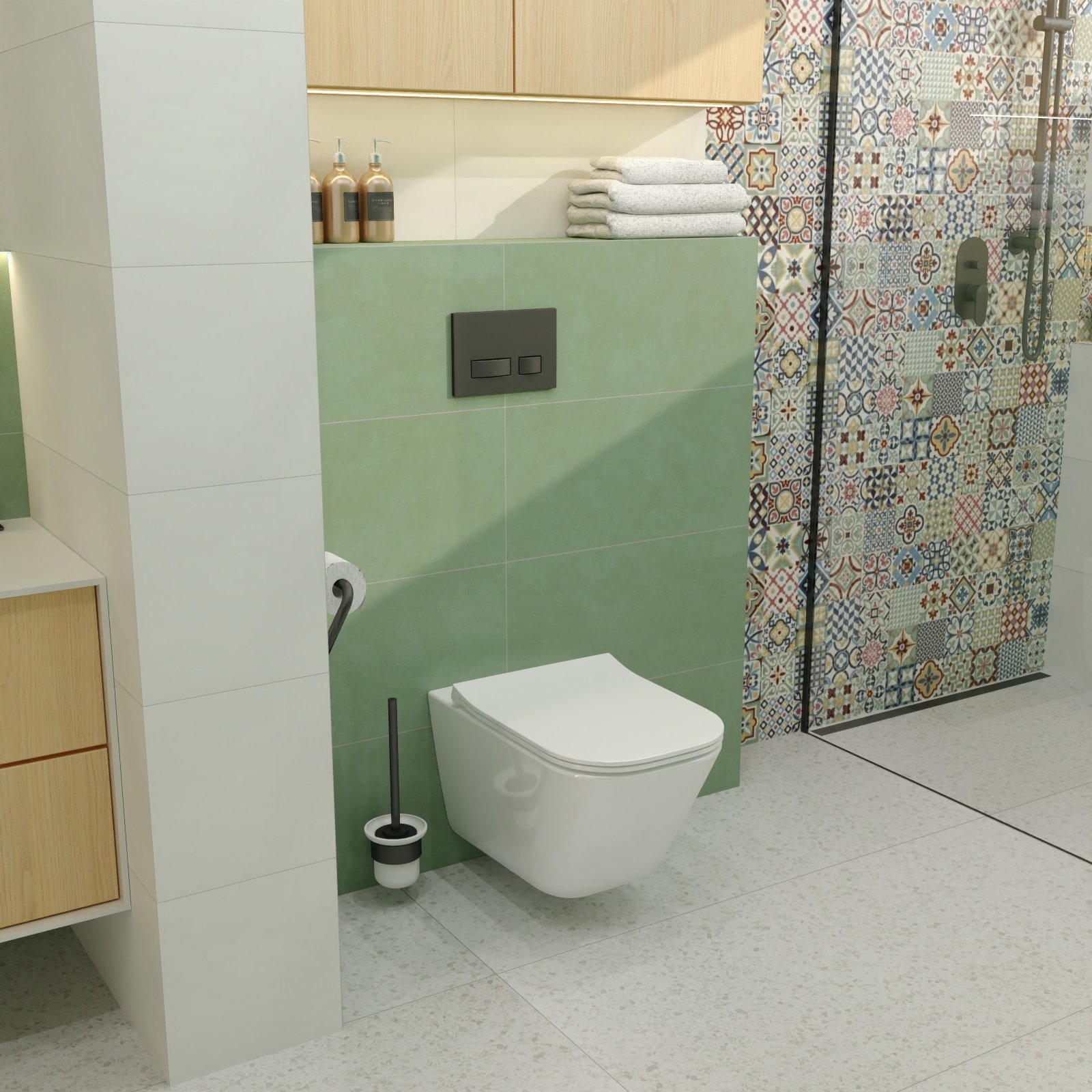 Powierzchnia płytek ściennych pokryta jest cienką warstwą szkliwa, co zabezpiecza je przed zaplamieniem, ułatwia utrzymanie w czystości oraz zapewnia maksymalną higienę podczas użytkowania.