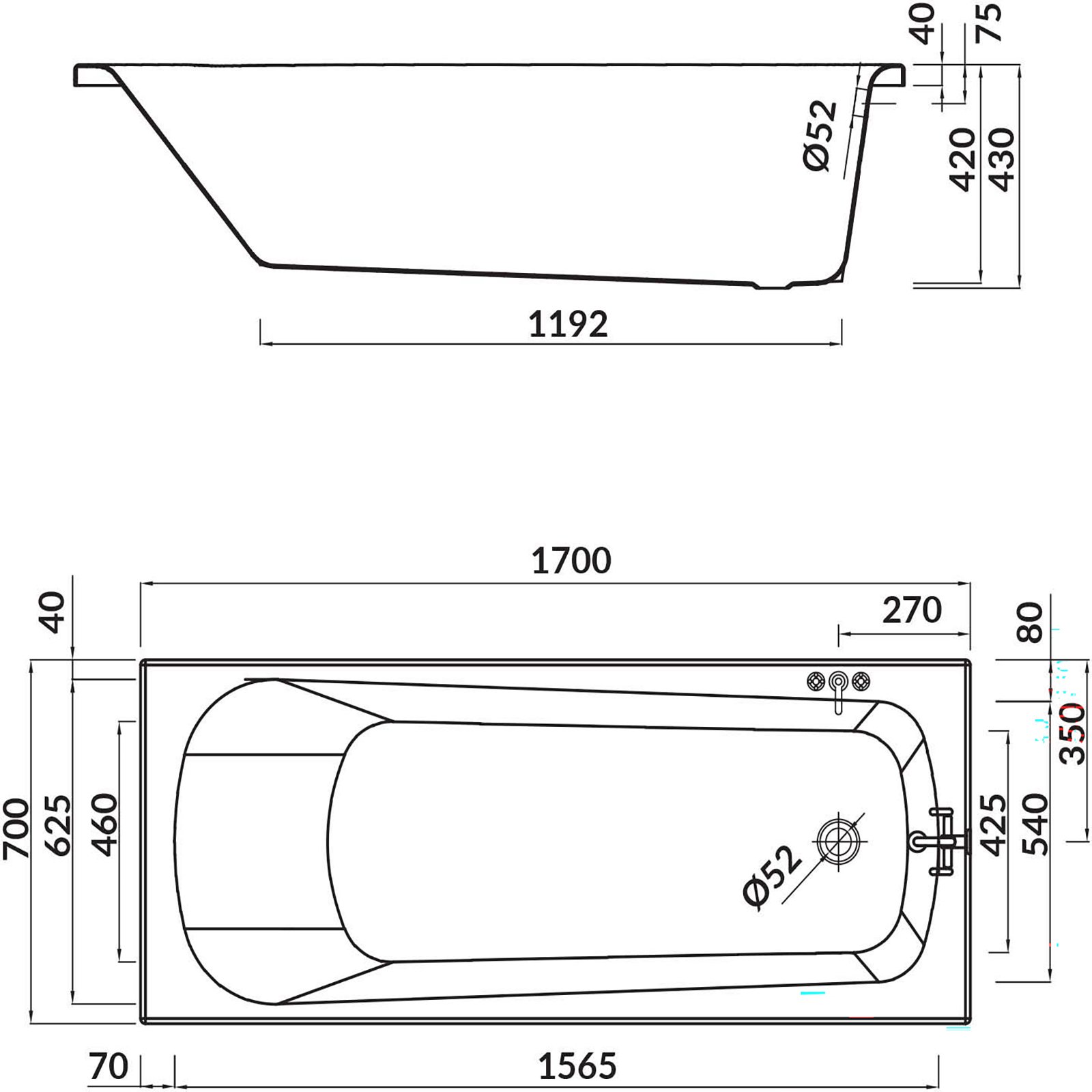 Przestronne wnętrze prostokątnej wanny NAO 170 wyposażono w profilowane oparcie dla pleców. Ponadto model posiada miejsce na baterię oraz odpływ boczny zlokalizowany przy krótszym boku. Cena obejmuje regulowane nóżki. Wanna efektownie prezentuje się obudowana panelami bocznym i czołowym LORENA, które można dokupić oddzielnie.