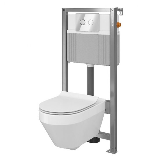 Solidna, całkowicie ocynkowana rama wykonana z 40 mm pełnych profili z możliwością obrócenia stóp. W modelu zastosowano funkcjonalne rozwiązania: system QUICK FIX, doprowadzenie wody na cztery sposoby, regulowaną rurę odpływową. Dzięki zastosowaniu innowacyjnej technologii CleanOn oraz higienicznego FRESH SYSTEM, miska pozostaje zawsze czysta i bezpieczna w użytkowaniu. Oszczędność wody zapewni ekonomiczny system spłukiwania: 2/4 lub 3/5 L.