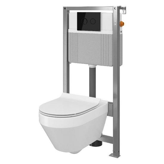 Stelaż podtynkowy AQUA 72 CREA miska owalna deska duroplast wo łatwe wyp przycisk czarny. Skład zestawu: