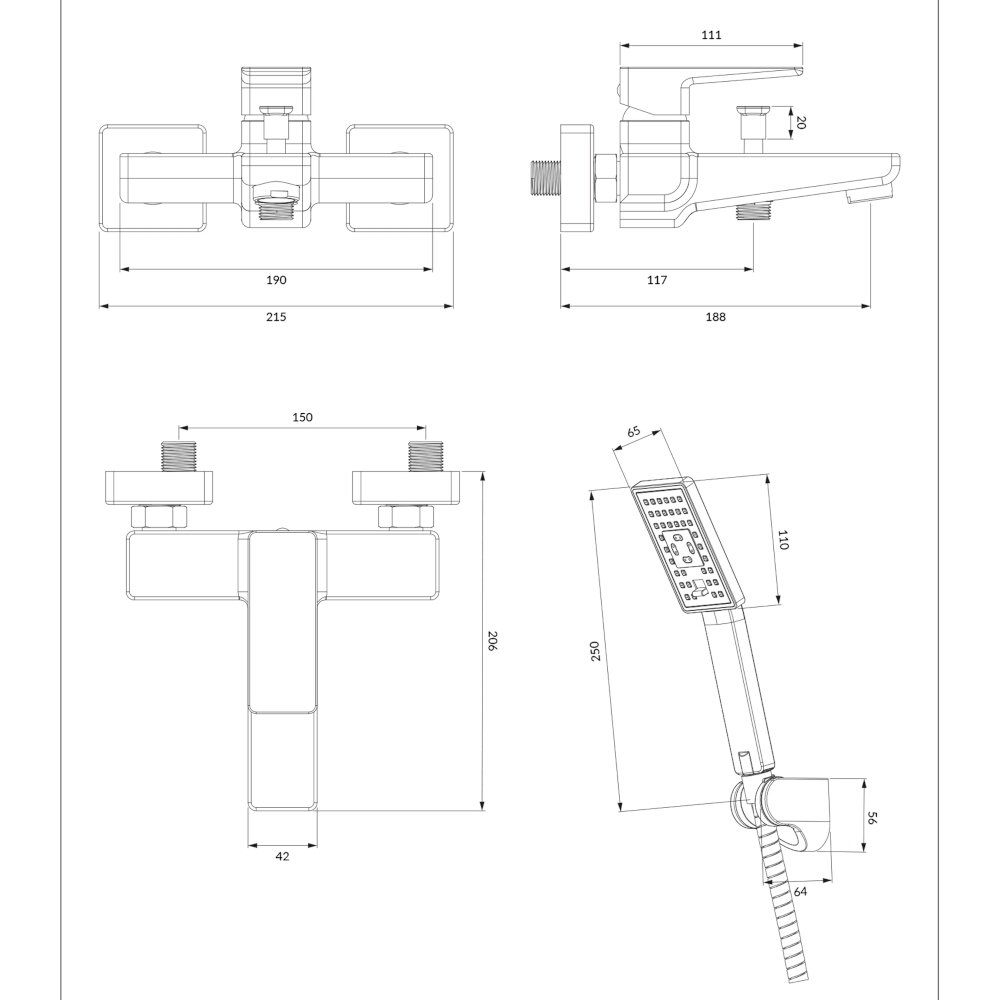 - Długość węża natrysku: 150 cm