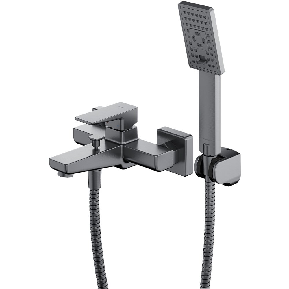 Bateria wannowa PARMA ścienna z zestawem prysznicowym nikiel szczotkowany.