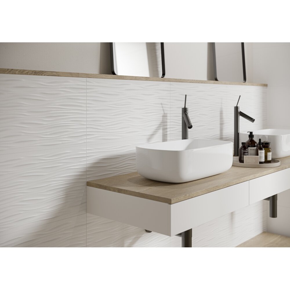 Powierzchnia płytek ściennych pokryta jest cienką warstwą szkliwa, co zabezpiecza je przed zaplamieniem, ułatwia utrzymanie w czystości oraz zapewnia maksymalną higienę podczas użytkowania. Gwarantuje też zachowanie pierwotnego koloru w całym okresie eksploatacji.