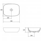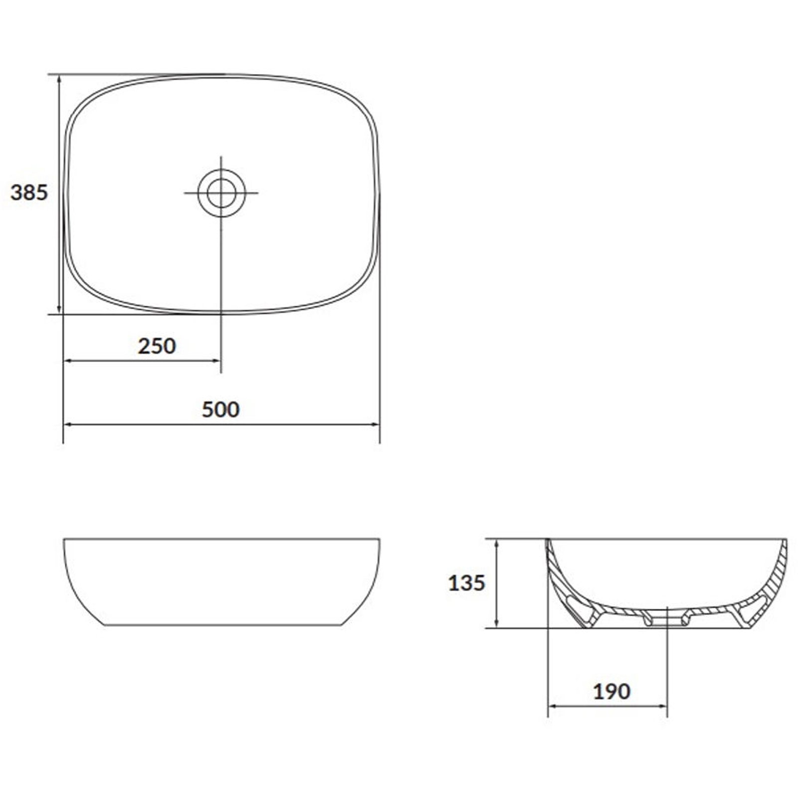 Brak otworu na armaturę. Nie posiada przelewu. Wysokość umywalki to 13,5 cm.