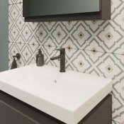 Gres szkliwiony LOVELY PATCHWORK GEOMETRIC FLOWER white-blue mat #294 29,8x29,8. Gatunek pierwszy. Do stosowania na podłogach i ścianach, wewnątrz i na zewnątrz budynków, z wyłączeniem miejsc o bardzo dużym natężeniu ruchu.