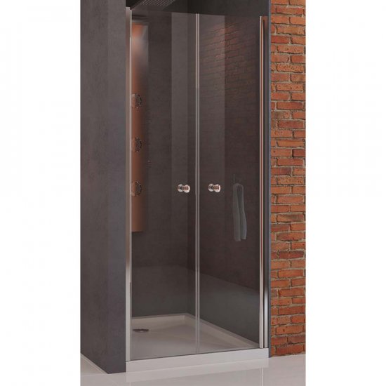 Drzwi wnękowe Soleo, wahadłowe, podwójne. Drzwi prysznicowe, uniwersalne, o dowolnej stronie montażu. Wymiary 130x190cm i 135x190cm. Model posiada eleganckie, chromowane detale. Drzwi wyposażone w bezpieczną, hartowaną szybę o grubości 6mm, z powłoką ochronną. Posiadają zawias kolumnowy, pozwalający uchylać drzwi na zewnątrz i do środka. Produkt może być instalowany z brodzikiem lub bez brodzika.
