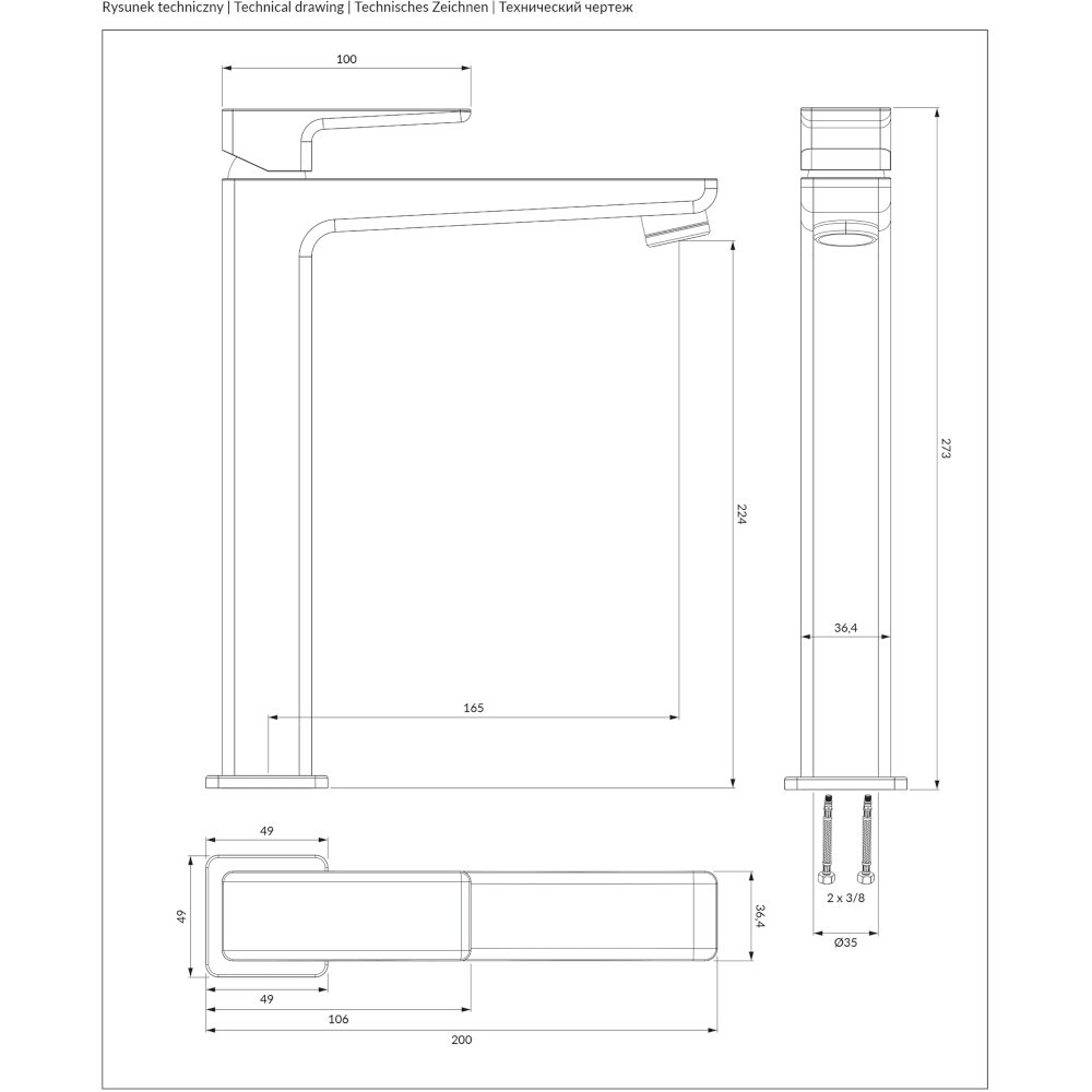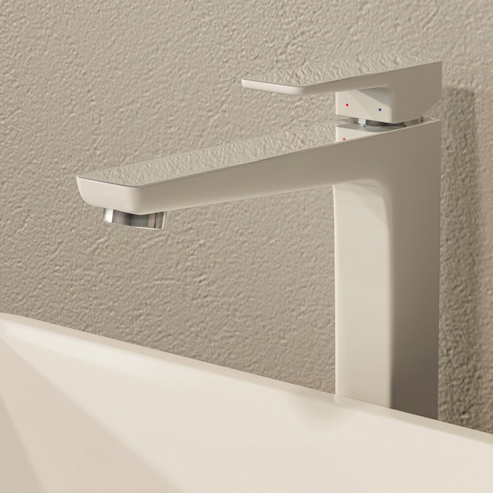 Bateria umywalkowa PARMA stojąca wysoka chrom biały połysk.