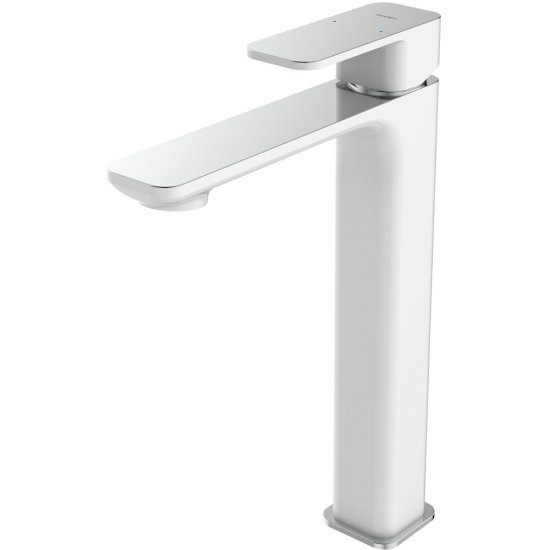 Bateria umywalkowa stojąca APURE wysoka chrom biały.