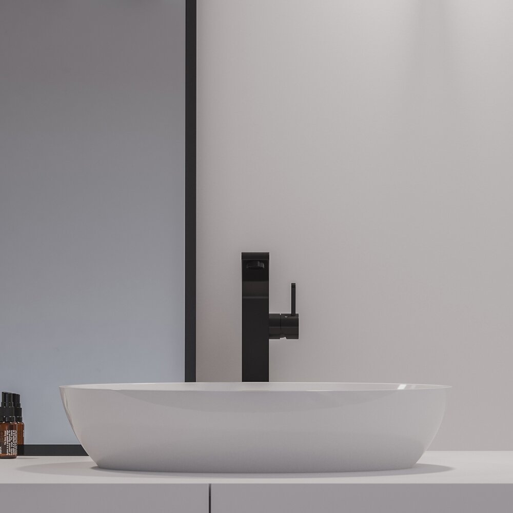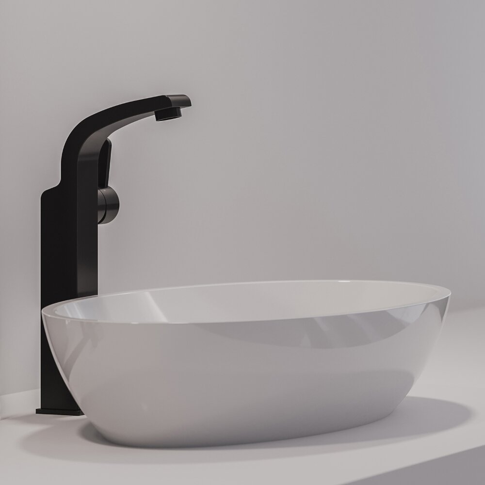 Bateria umywalkowa DARLING stojąca wysoka 33 cm czarna półmat.
