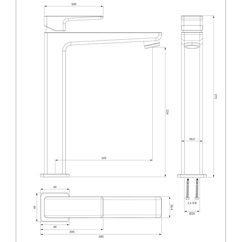 Bateria umywalkowa PARMA stojąca wysoka grafit szczotkowany.