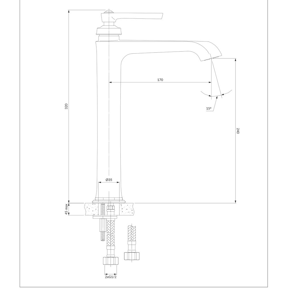 Bateria umywalkowa stojąca ARMANCE złota z korkiem klik-klak wysoka 32 cm.
