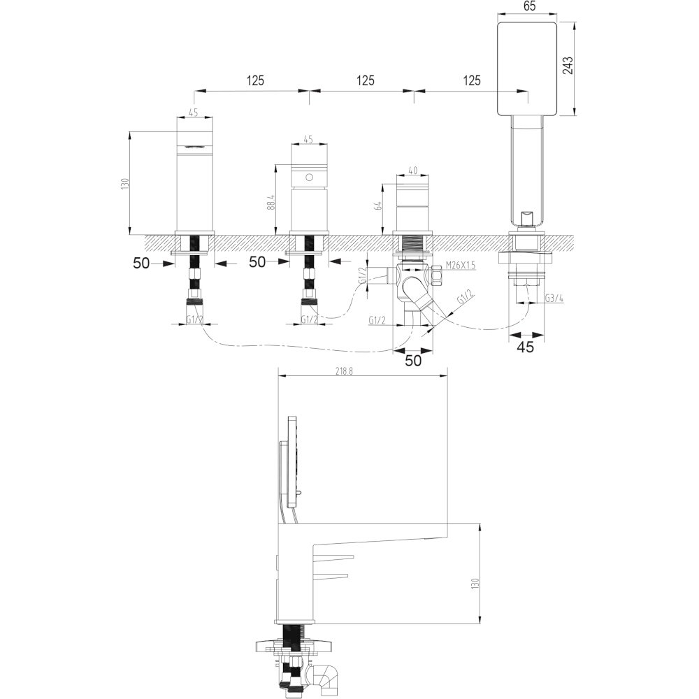 - wąż prysznicowy w osłonie stalowej, długość: 150 cm