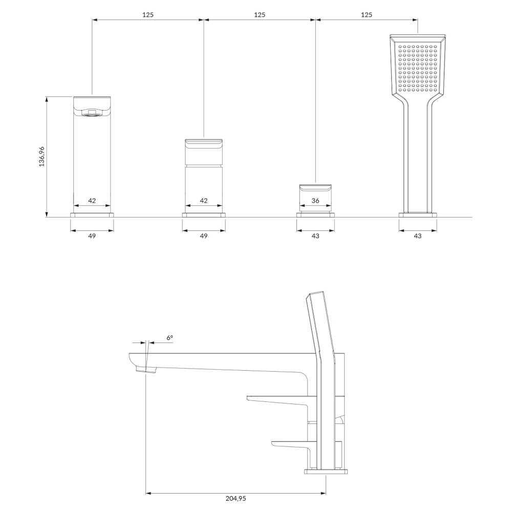 Bateria nawannowa PARMA 4-otworowa chrom biały połysk.