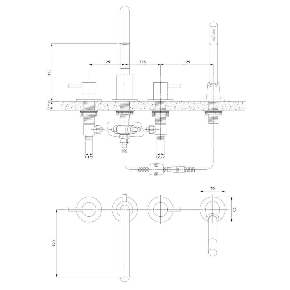 - rączka prysznicowa mosiężna, 1-funkcyjna