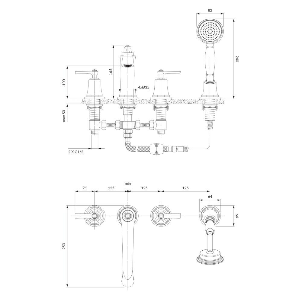 - wąż prysznicowy w osłonie mosiężnej, długość: 180 cm