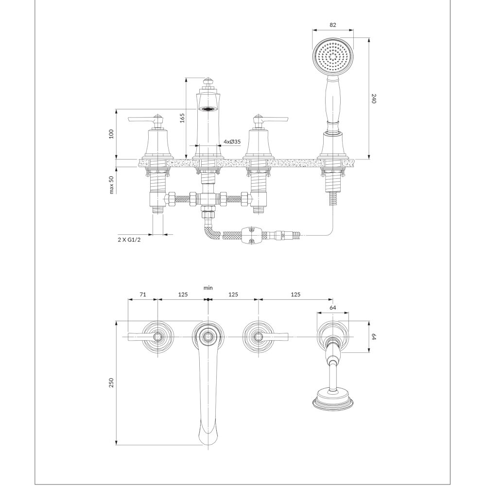 - rączka prysznicowa mosiężna, 1-funkcyjna