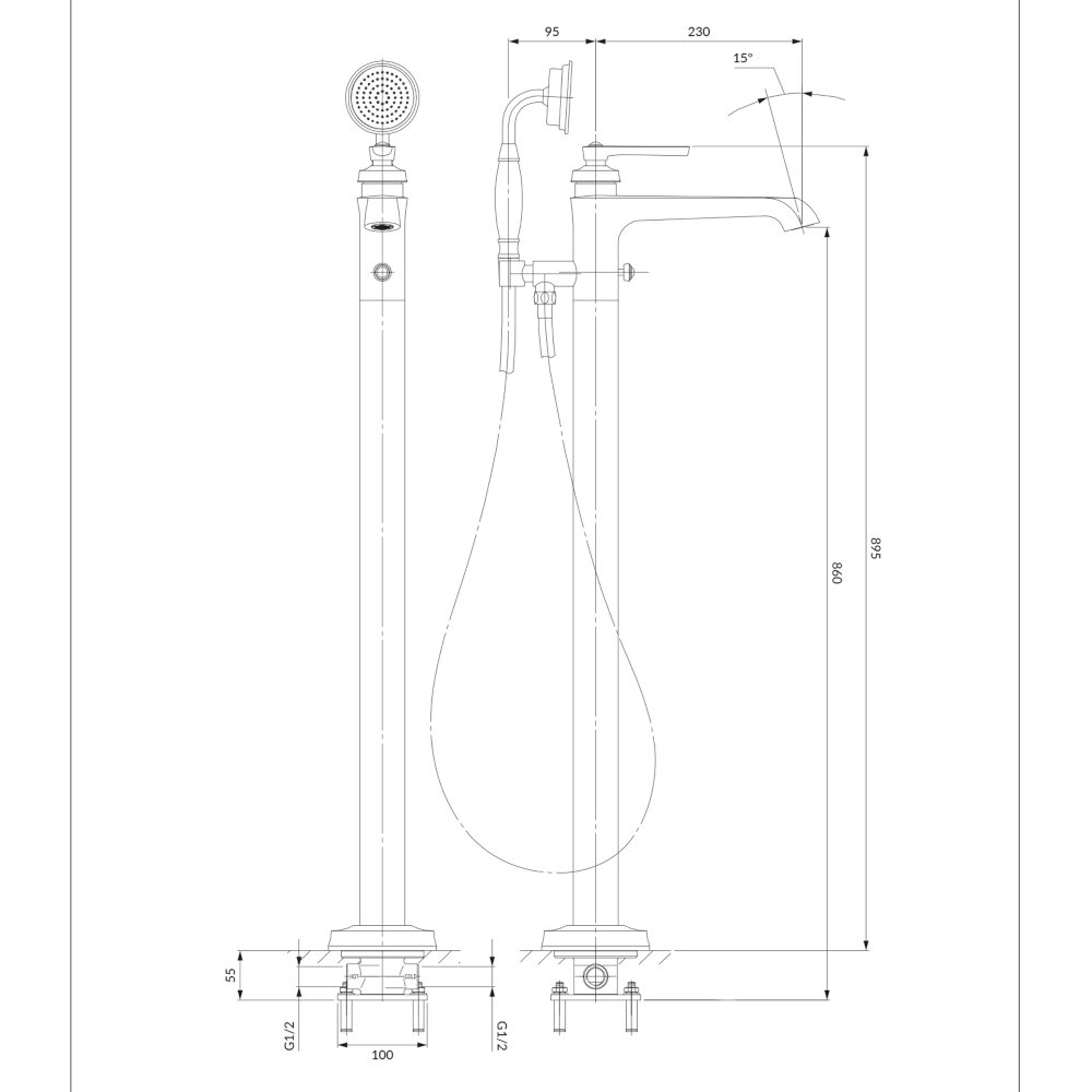 - wąż prysznicowy w osłonie PVC, długość: 150 cm