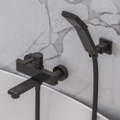 Bateria wannowa DARLING ścienna z zestawem prysznicowym czarny półmat.