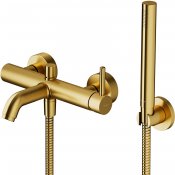 Bateria wannowa Y ścienna z zestawem prysznicowym złota szczotkowana.