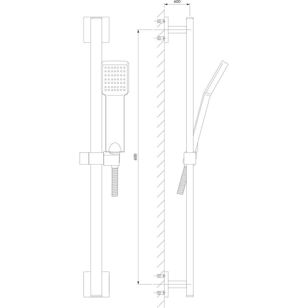 drążek prysznicowy mosiężny, długość: 65 cm, rozstaw mocowań: 60 cm