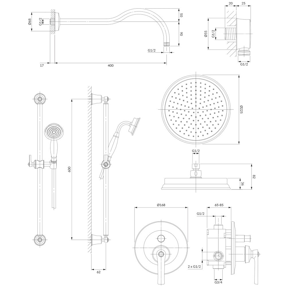 - zestaw prysznicowy suwany (ARMANCE-SCR), 1-funkcyjny
