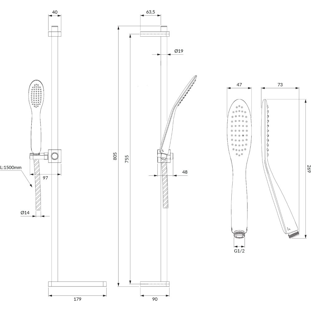 Zestaw prysznicowy SIENA suwany chrom biały połysk.
