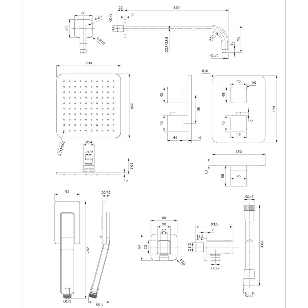 Termostatyczny system prysznicowy PARMA podtynkowy grafit szczotkowany.
