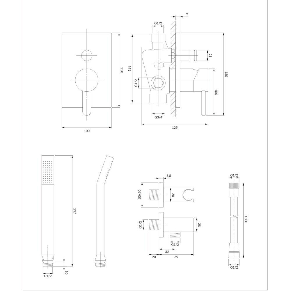 - przyłącze kątowe mosiężne (8876GL), z uchwytem na rączkę prysznicową