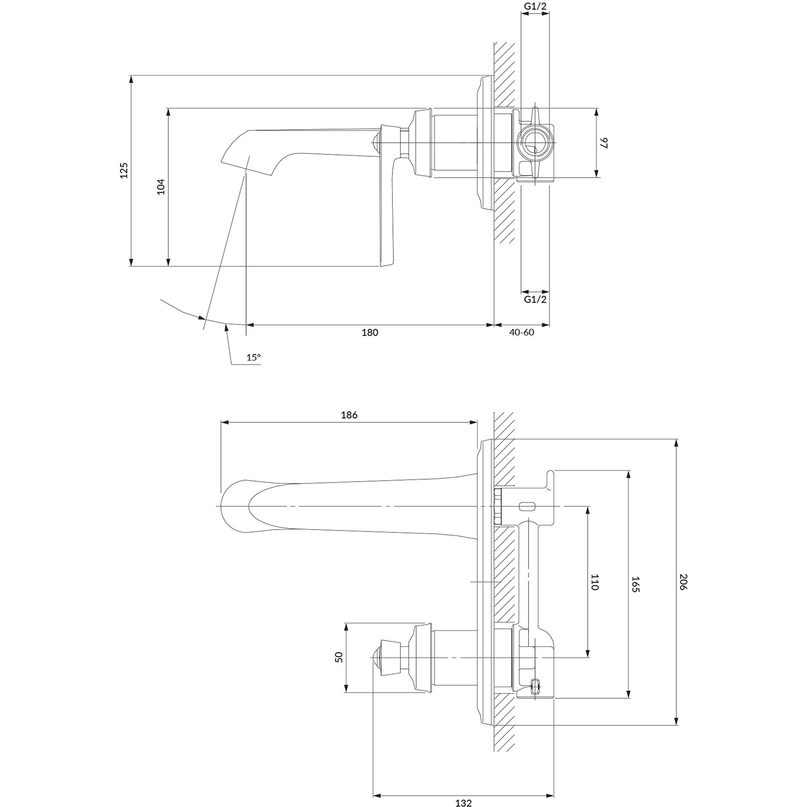 - Zasięg wylewki: 180 mm