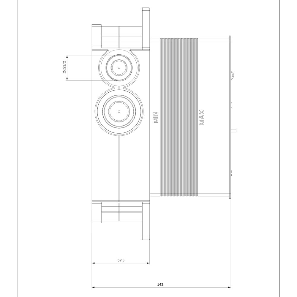 Element podtynkowy termostatycznej baterii 2-wyjściowej.