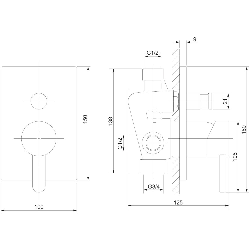 - dwa wejścia (na wodę ciepłą i zimną): 1/2", dwa wyjścia wody zmieszanej: 1/2" i 3/4"