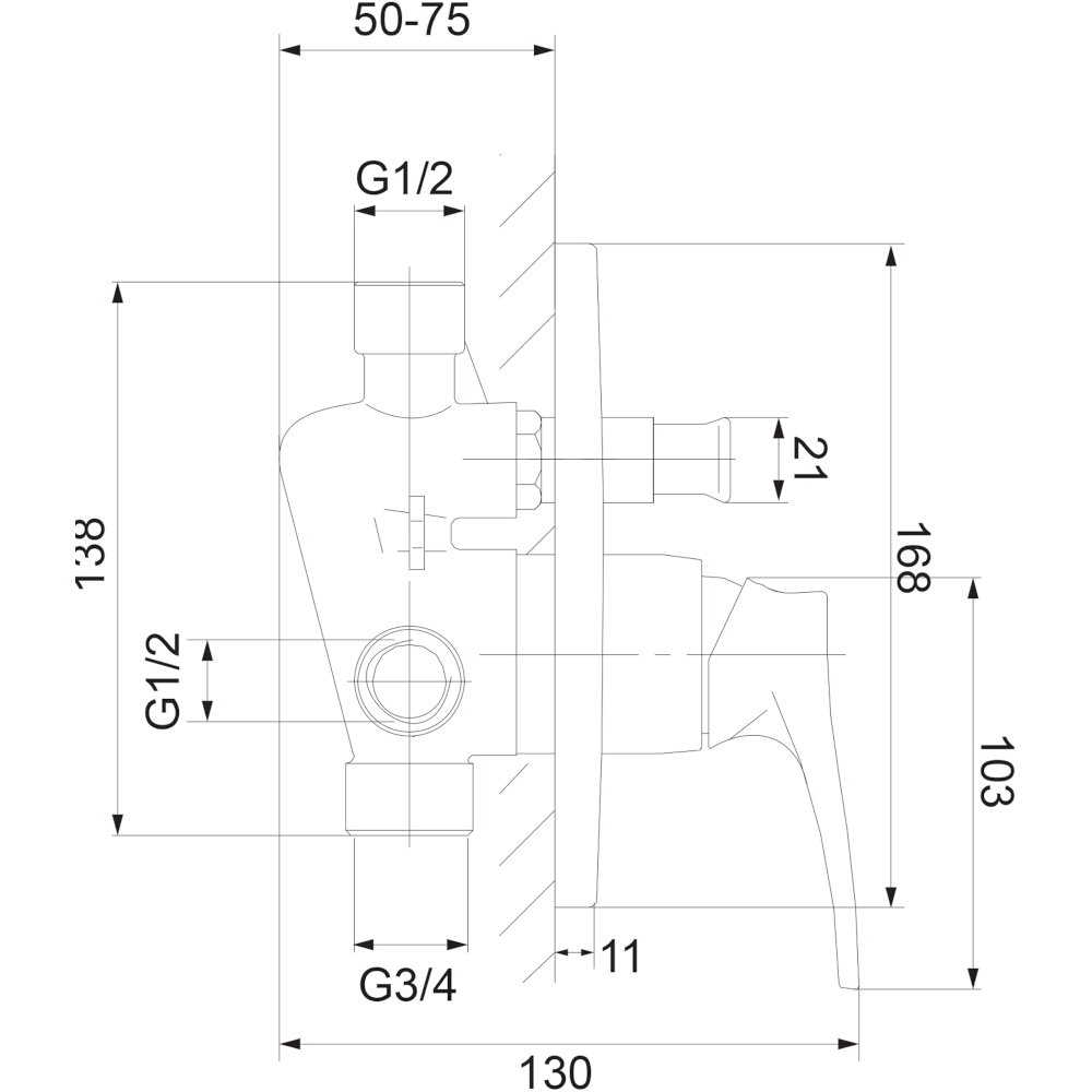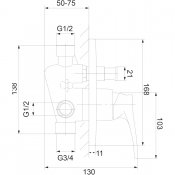 - dwa wejścia (na wodę ciepłą i zimną): 1/2", dwa wyjścia wody zmieszanej: 1/2" i 3/4"