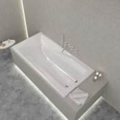 Bateria wannowa podtynkowa z kolekcji OMNIRES Y, ze zintegrowaną rączką prysznicową, zachwyca czystą linią i nieskazitelną formą, będącą wyrazem pasji w dążeniu do ideału. Inspirację i podstawę dla projektu stanowił kształt koła. Ponadczasowy wzór stworzony w duchu minimalizmu daje maksymalne możliwości aranżacyjne. Symetryczna forma baterii perfekcyjne współgra z wanną, tworząc harmonijną kompozycję. Montaż podtynkowy gwarantuje oszczędność miejsca, a także łatwość czyszczenia.