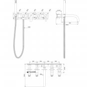 Bateria wannowa Ypodtynkowa chrom 5-otworowa.