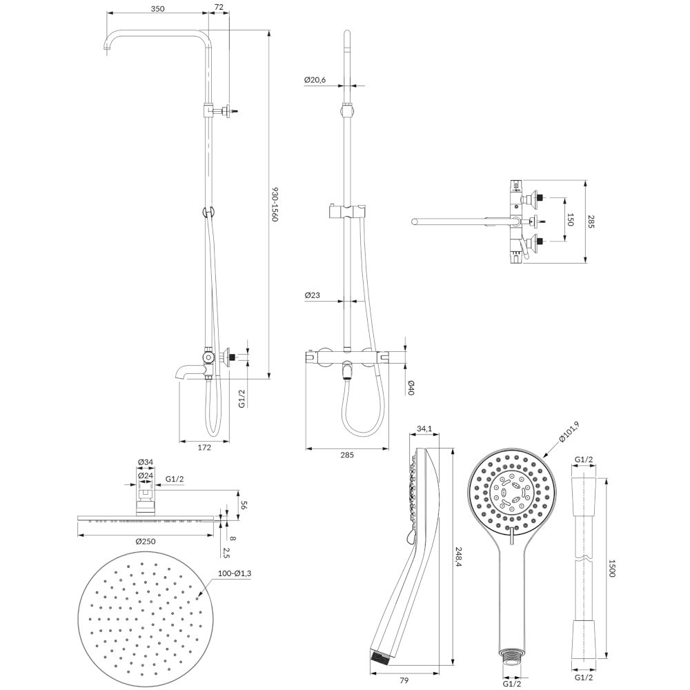 - deszczownica mosiężna (WG125BL), rozmiar: o25cm, zasięg od ściany: 42 cm