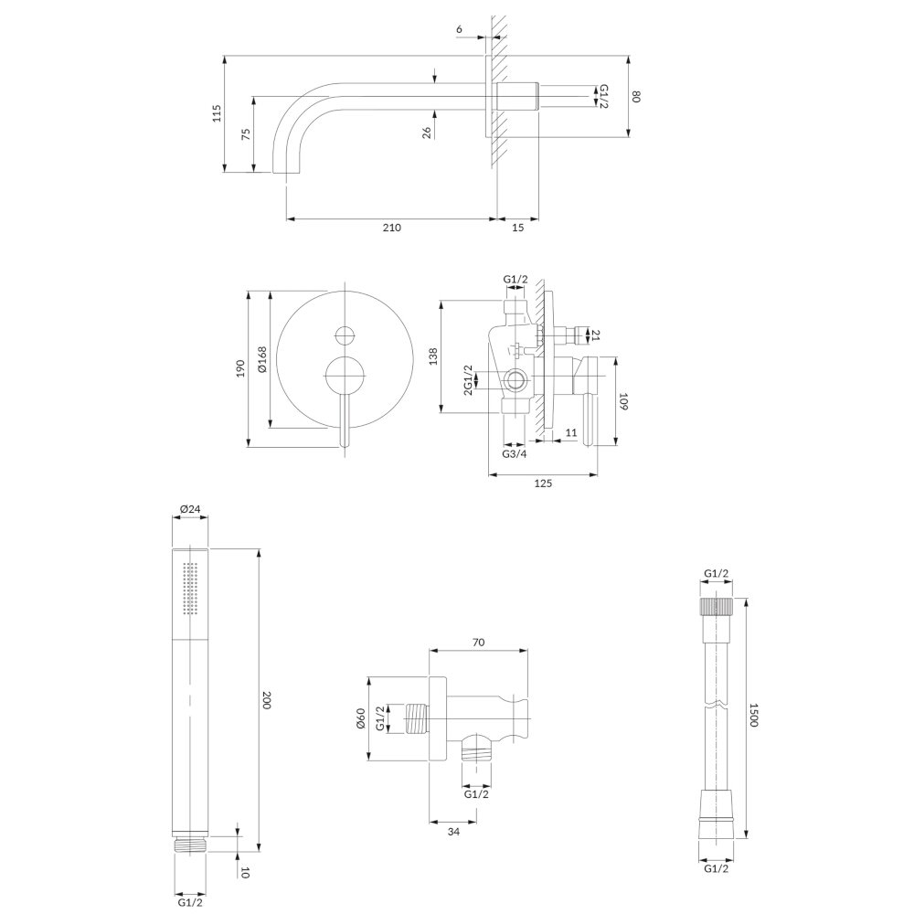 - wylewka wannowa ścienna (WDYBL), zasięg wylewki: 21 cm