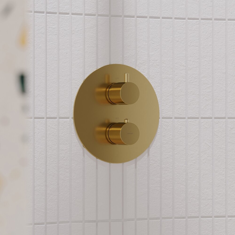Element natynkowy termostatycznej baterii prysznicowo-wannowej Y podtynkowej złoty szczotkowany.