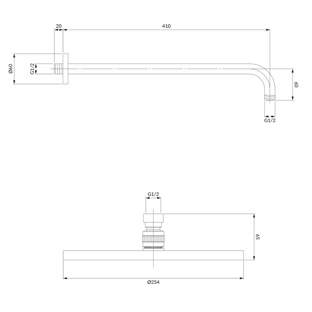 OMNIRES Deszczownica z ramieniem o25 cm czarna półmat WGSET1BL