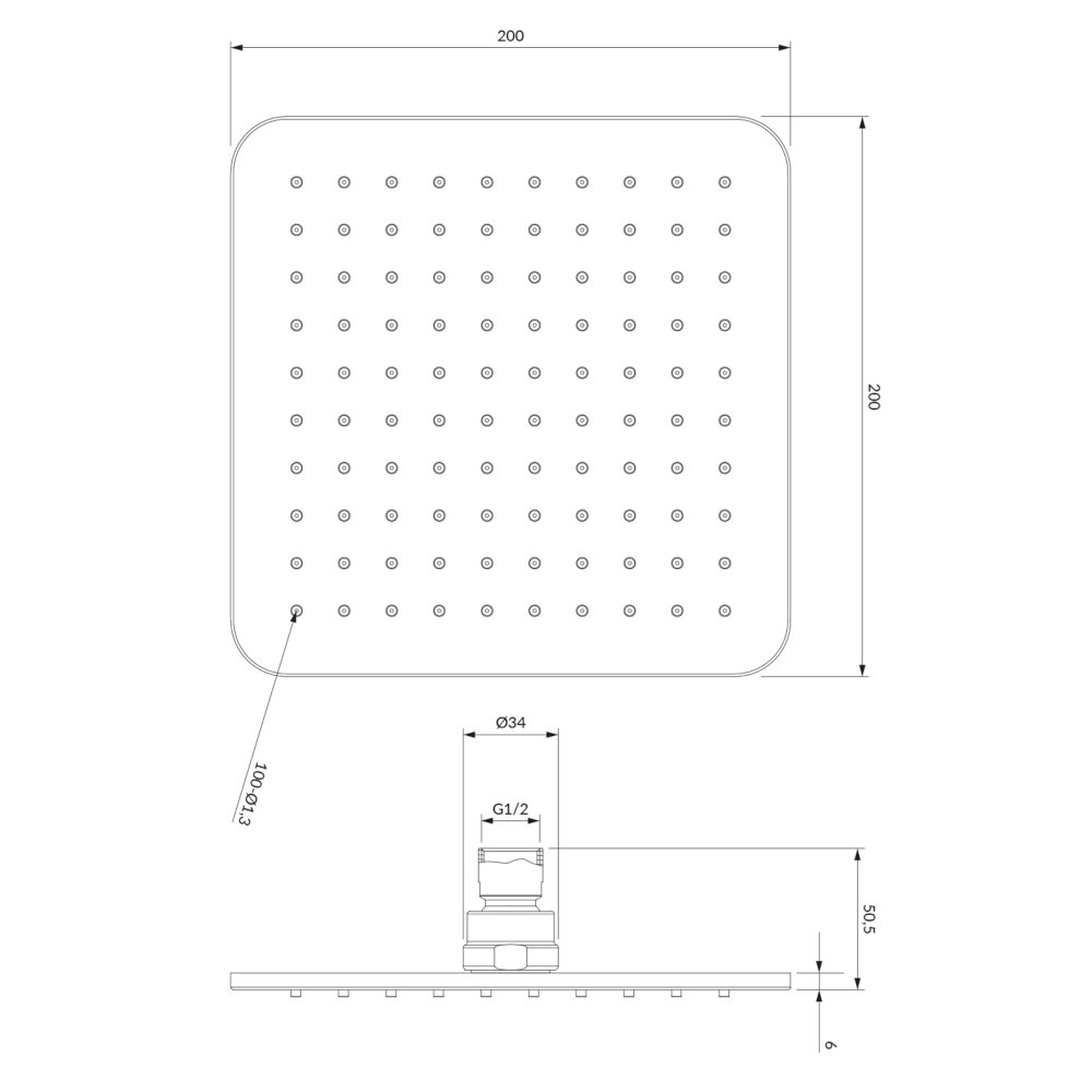 OMNIRES Deszczownica SLIMLINE 20x20 cm czarny mat WG220/OBL