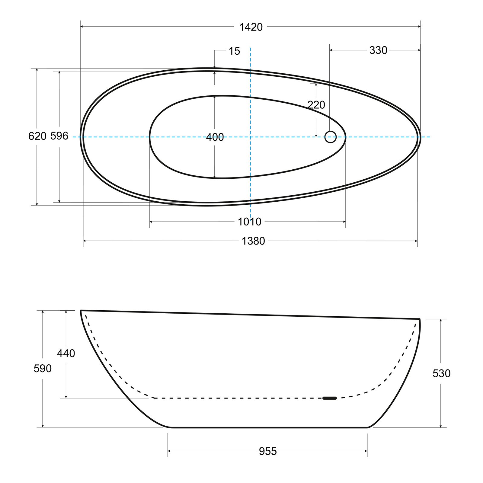 Wanna wolnostojąca GOYA XS 142x62 cm klik-klak biały czyszczony od góry.
