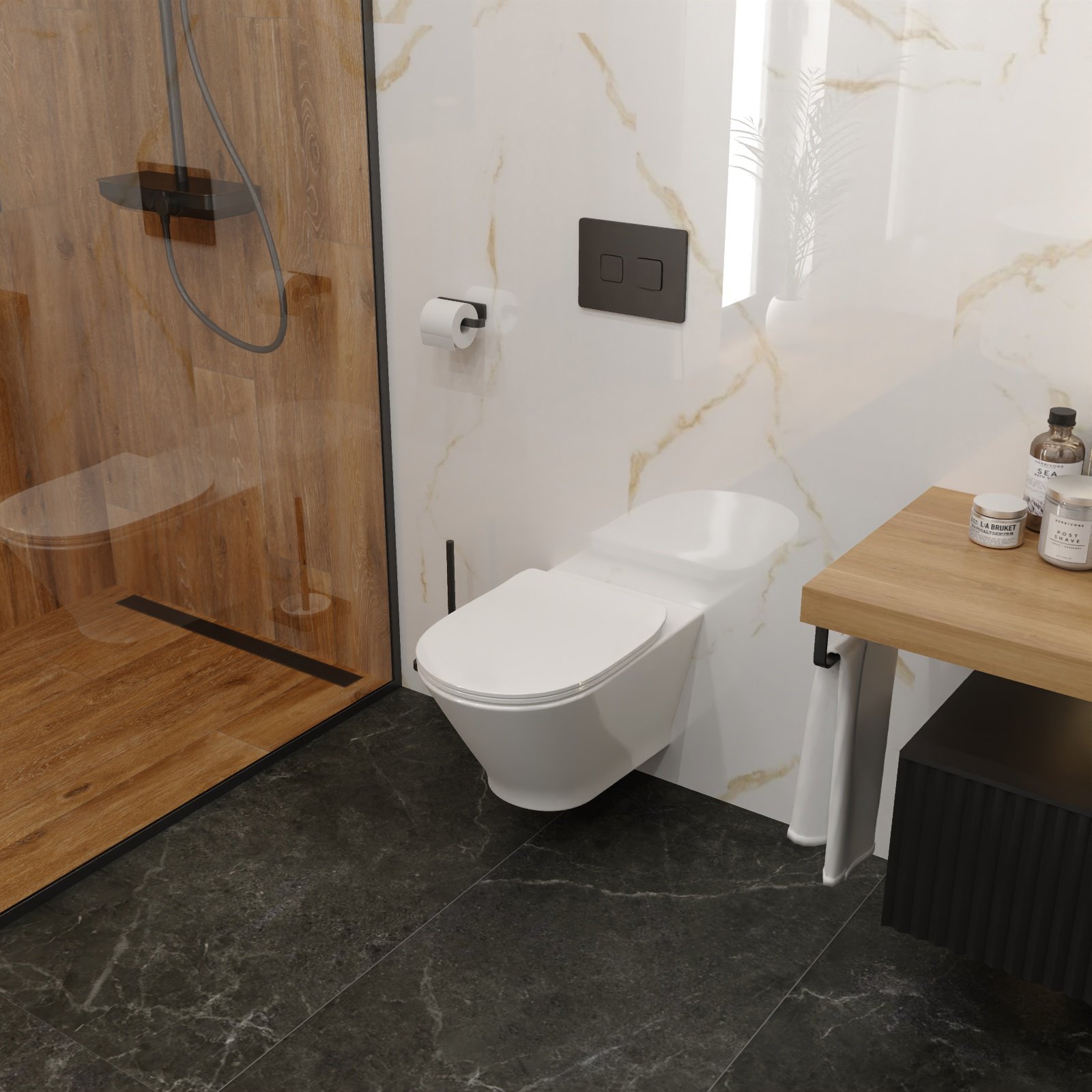 Miska wc bezkołnierzowa z ukrytym systemem montażu - ułatwia utrzymanie w czystości gwarantując maksimum higieny. Specjalny dystrybutor wody zapewnia optymalne i ekologiczne spłukiwanie 4,5/3l lub nawet 4/2l wody. Deska wolnoopadająca z funkcją łatwego demontażu ułatwia łatwe czyszczenie.