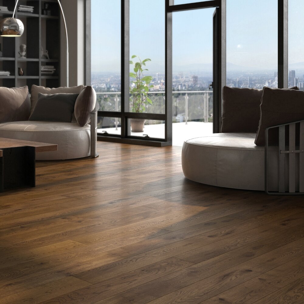 Kolekcja dynamicznych podłóg dębowych, we wzorze deski 1-rzędowej, których szczotkowane powierzchnie zostały uszlachetnione modnymi kolorami, nawiązującymi do klimatu i stylu europejskich metropolii.