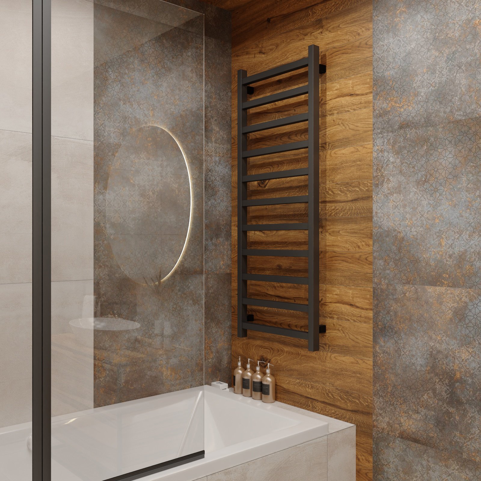 Grzejnik łazienkowy LUGO black mat 960/500. Temperatura pracy 95 stopni Celsjusza, ciśnienie robocze 800kPa, pojemność 4,34 dm7.