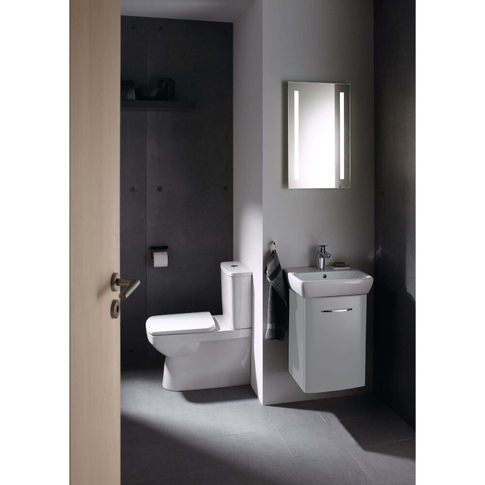 Wisząca łazienkowa szafka z umywalką KOŁO NOVA PRO to trwały i estetyczny wybór do mniejszych łazienek - szerokość umywalki wynosząca 45 centymetrów pozwala na zaoszczędzenie miejsca w pomieszczeniu. Zastosowanie przelewu zabezpiecza pomieszczenie przed zalaniem, z kolei otwór na baterię pozwala Ci samodzielnie dobrać odpowiedni jej model, dzięki któremu dopasujesz go do potrzeb oraz stylu Twojej łazienki. Wykonanie z materiału ceramicznego z kolei zapewnia wysoką wytrzymałość. W podobny sposób działa płyta wilgocioodporna, z której stworzono szafkę; zapobiega ona uszkodzeniom na skutek wilgoci, dzięki czemu Twoja łazienka przez cały czas pozostanie piękna. Wewnątrz znajduje się nieregulowana półka, pozwalająca wygodnie przechowywać drobiazgi, a drzwiczki wyposażono w mechanizm cichego domykania. Wybierz umywalkę z szafką łazienkową KOŁO NOVA PRO i postaw na pełen profesjonalizm i niebywale estetyczny wygląd.