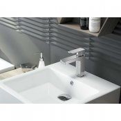 Bateria umywalkowa stojąca MARUNA chrom. Bateria umywalkowa z kolekcji Maruna ze swoimi geometrycznymi kształtami i wyraźnie zarysowanymi krawędziami spodoba się wszystkim miłośnikom nowoczesnego designu. Ta stojąca, jednouchwytowa bateria umywalkowa wyposażona została w ruchomy aerator napowietrzający strumień wody i zwiększający jego objętość (co redukuje zużycie wody) oraz w kwadratowy - nawiązujący swoim kształtem do przekroju korpusu baterii - korek click-clack, z którym zamknięcie i otwarcie odpływu jest szybkie i dziecinnie proste. Ceramiczna głowica, łatwy montaż i piękny wygląd to dodatkowe zalety prezentowanej tu baterii.