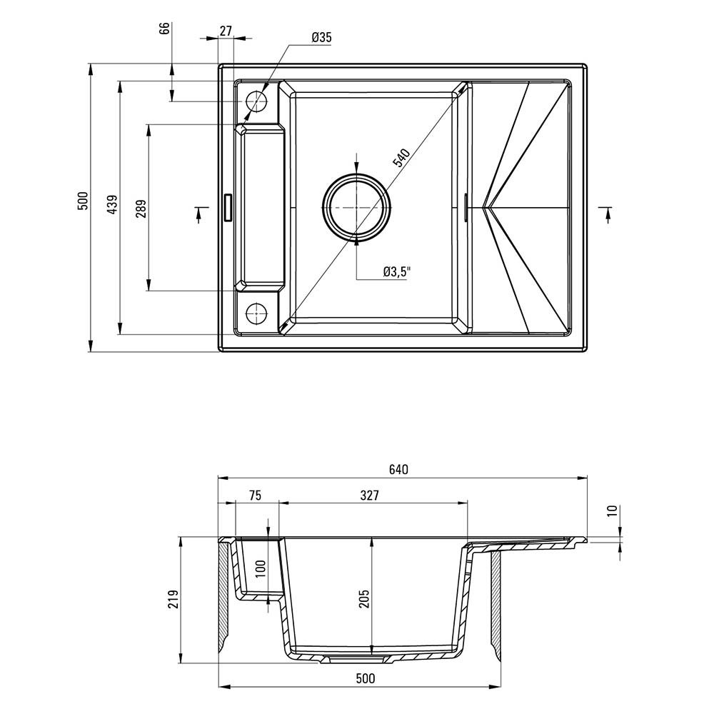 - średnica odpływu: 3,5''
